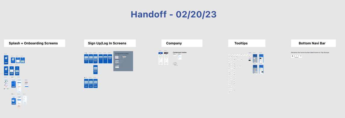We presented to Share scoops possible design solutions based on the feedback provided from user testing that also aligned with their existing design. As a team, we made use of the existing design system but implemented improvements for the onboarding process, the home page, as well as the company page in order to provide users with a more cohesive and understandable user experience.